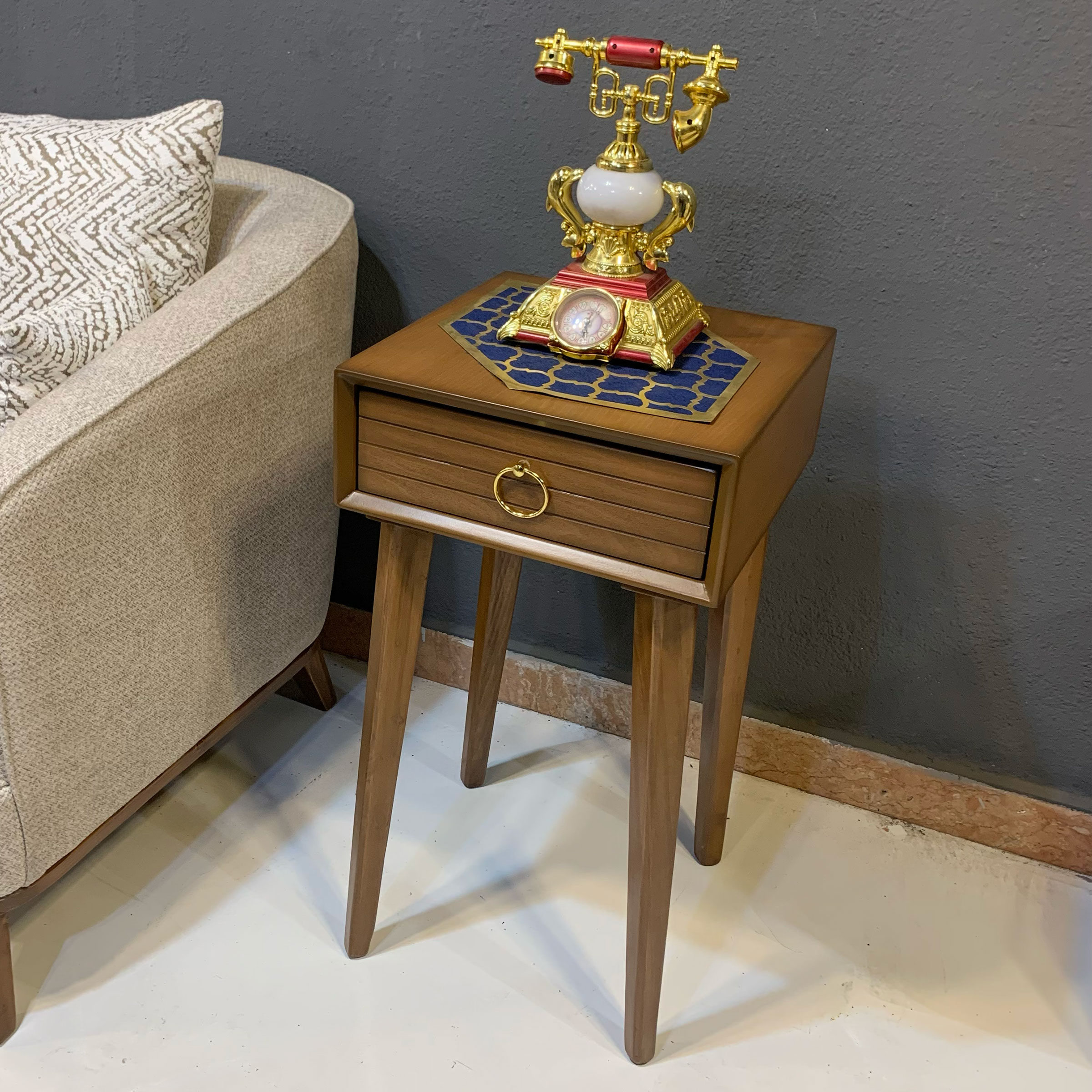 فلورانس در وهله اول یک میز تلفن با طراحی کلاسیک است که میتوانید از آن به عنوان یک میز در کنار مبلمان و سرویس خوابتان نیز استفاده کنید. این میز با وجود طراحی زیبا وزن کمی دارد و یک کشوی کاربردی نیز در آن تعبیه شده. جنس صفحه محصول و کشو از MDF مرغوب با روکش چوب و جنس پایهها تماما از چوب میباشد.